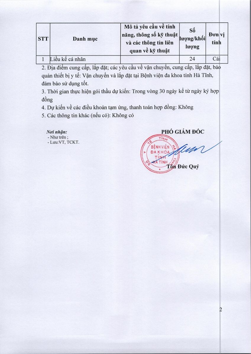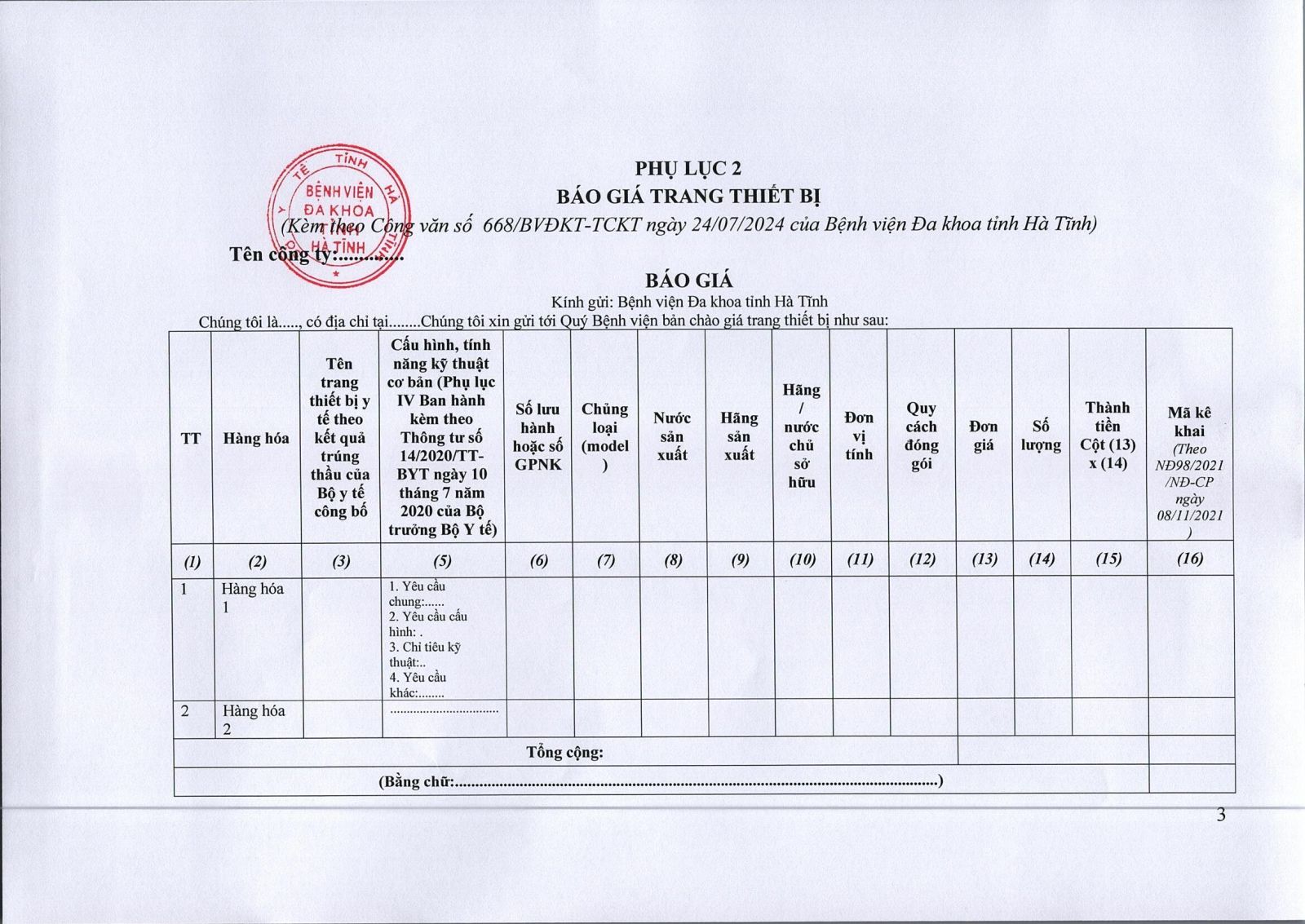 Bệnh viện đa khoa tỉnh Hà Tĩnh có nhu cầu tiếp nhận báo giá để tham khảo, xây dựng giá gói thầu, làm cơ sở tổ chức lựa chọn nhà thầu cho gói thầu Mua liều kế cá nhân cho bệnh viện Đa khoa tỉnh Hà Tĩnh với nội dung cụ thể như sau: