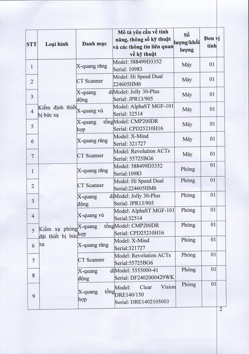 BVĐKT: Thông báo gửi thư báo giá gói thầu Kiểm định thiết bị bức xạ, kiểm xạ phòng đặt thiết bị bức xạ