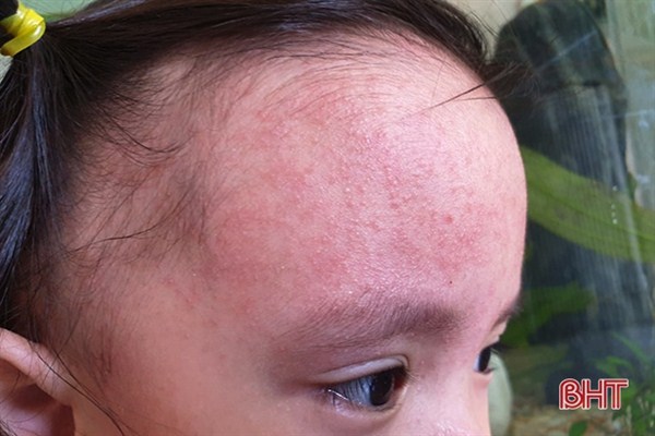 Chị Nguyễn Thị Hải Yến ở xã Thạch Châu, huyện Lộc Hà có con gái 4 tuổi bị rôm sảy ở vùng trán và mặt, gây ngứa ngáy khó chịu nhiều ngày. Theo lời người mẹ này, trời mát mẻ thì không sao nhưng cứ nắng nóng là bé lại nổi rôm sảy.