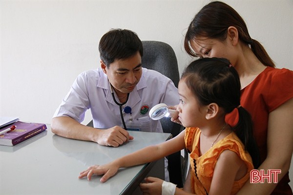 Bác sĩ Thái Xuân Hải đang thăm khám cho bệnh nhi