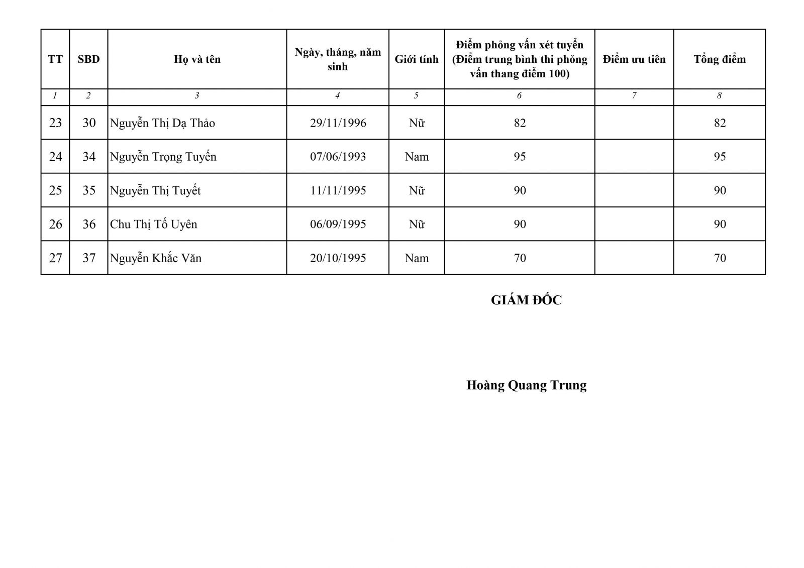 Kết quả phỏng vấn xét tuyển viên chức y tế năm 2019: