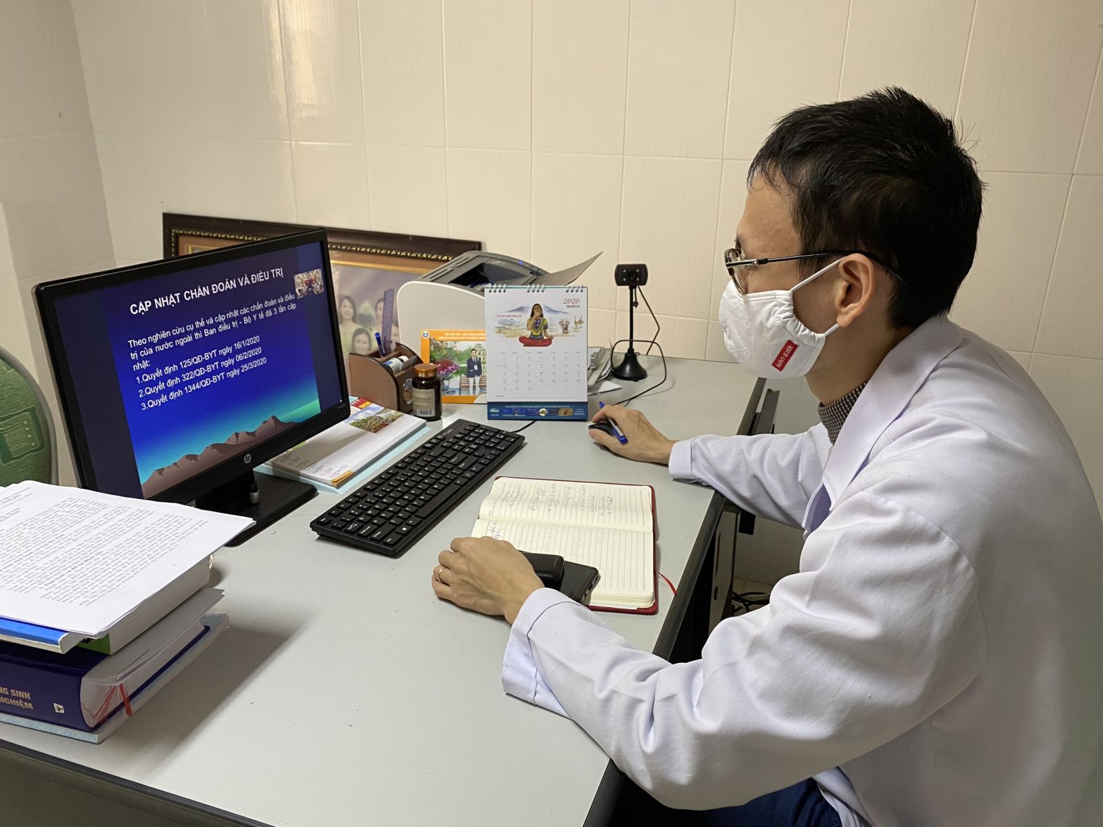 Chiều ngày 15/04/2020, Bệnh viện Đa khoa tỉnh Hà Tĩnh đã tổ chức tập huấn Cập nhật Hướng dẫn chẩn đoán, điều trị bệnh viêm đường hô hấp cấp do virus SARS - CoV - 2 (Covid - 19) theo quyết định 1344/QĐ-BYT của Bộ Y tế bằng hình thức trực tuyến cho cán bộ viên chức trong toàn viện.