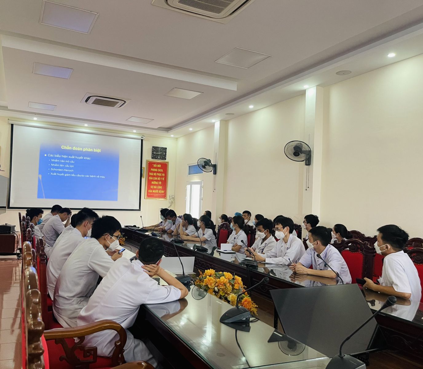 Thực hiện Công văn số 1417/SYT-NVY ngày 29/04/2022 của Sở Y tế về việc tăng cường công tác chẩn đoán, điều trị sốt xuất huyết Dengue để tích cực chủ động và liên tục nâng cao chất lượng công tác điều trị, giảm tỷ lệ tử vong do sốt xuất huyết Dengue (SXHD), chiều ngày 13/05/2022, Bệnh viện Đa khoa tỉnh đã tổ chức buổi tập huấn chẩn đoán và điều trị sốt xuất huyết.