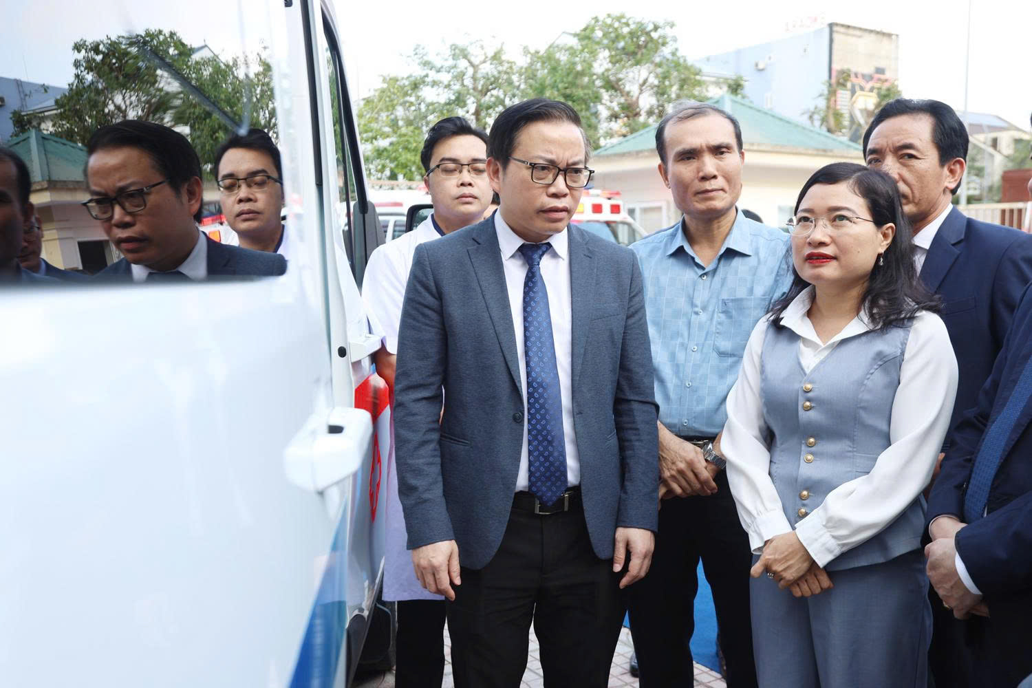 Đại diện lãnh đạo Vingoup, lãnh đạo tỉnh Hà Tĩnh, Sở Y tế...cùng Bệnh viện Đa khoa tỉnh tham quan xe cấp cứu cao cấp