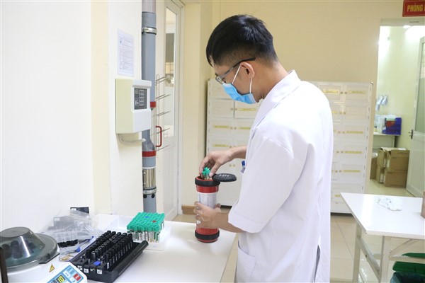 Kỹ thuật viên tiếp nhận bệnh phẩm từ khoa Khám bệnh.