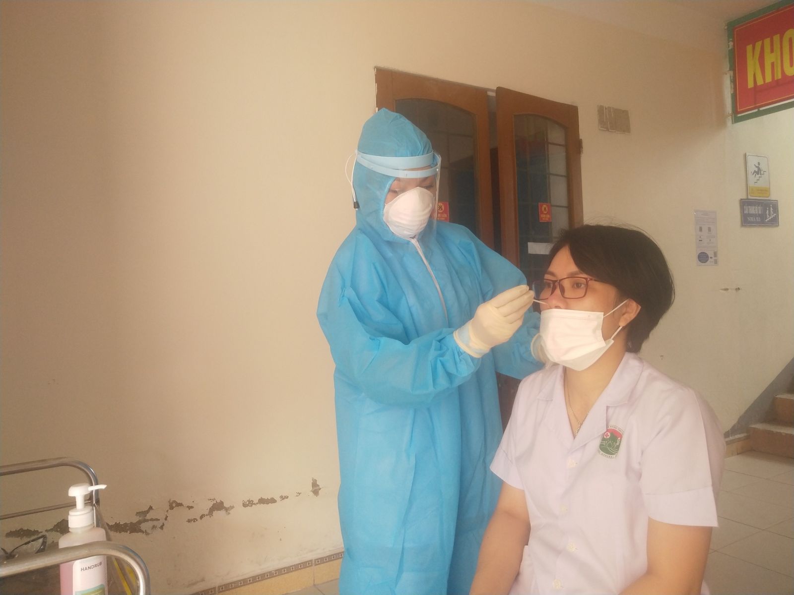 Lấy mẫu xét nghiệm cho cán bộ BVĐK tỉnh.