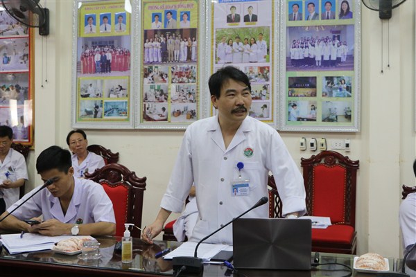 Đồng chí Hoàng Quang Trung, Bí thư Đảng ủy, Giám đốc Bệnh viện phát biểu kết luận cuộc họp