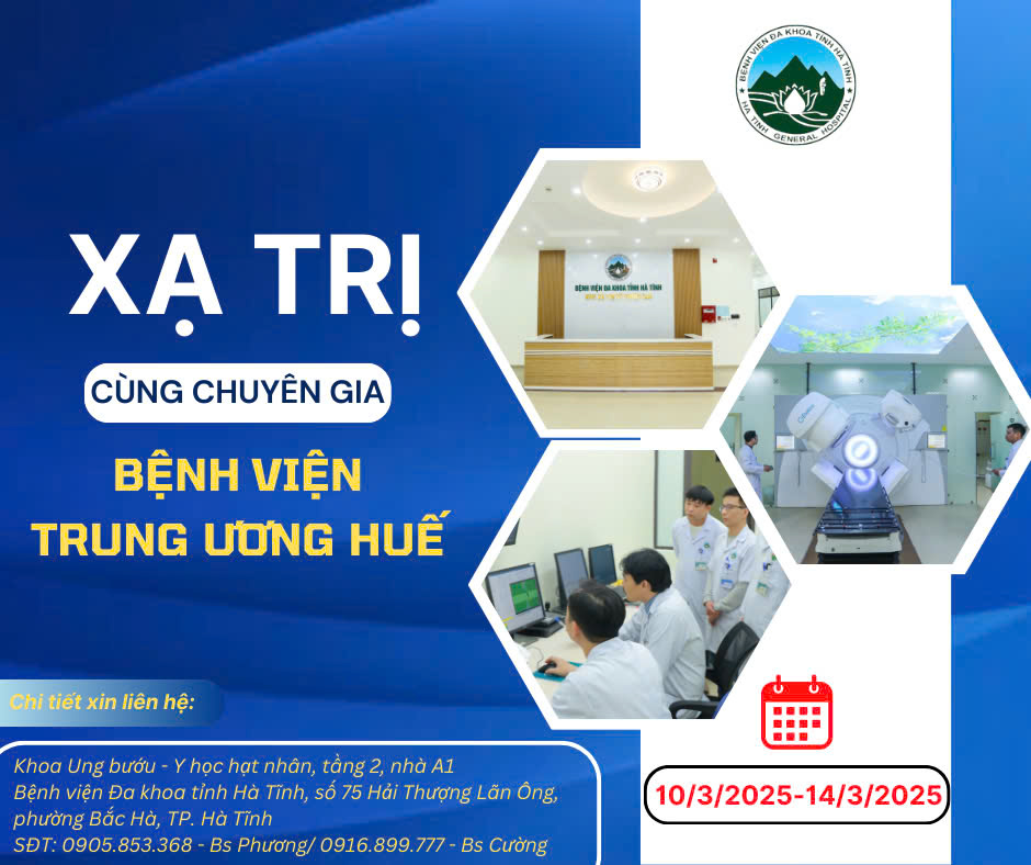 Bệnh viện Đa khoa tỉnh Hà Tĩnh trân trọng thông báo và mời các bệnh nhân có nhu cầu xạ trị ung thư đến để được thăm khám và điều trị kịp thời: