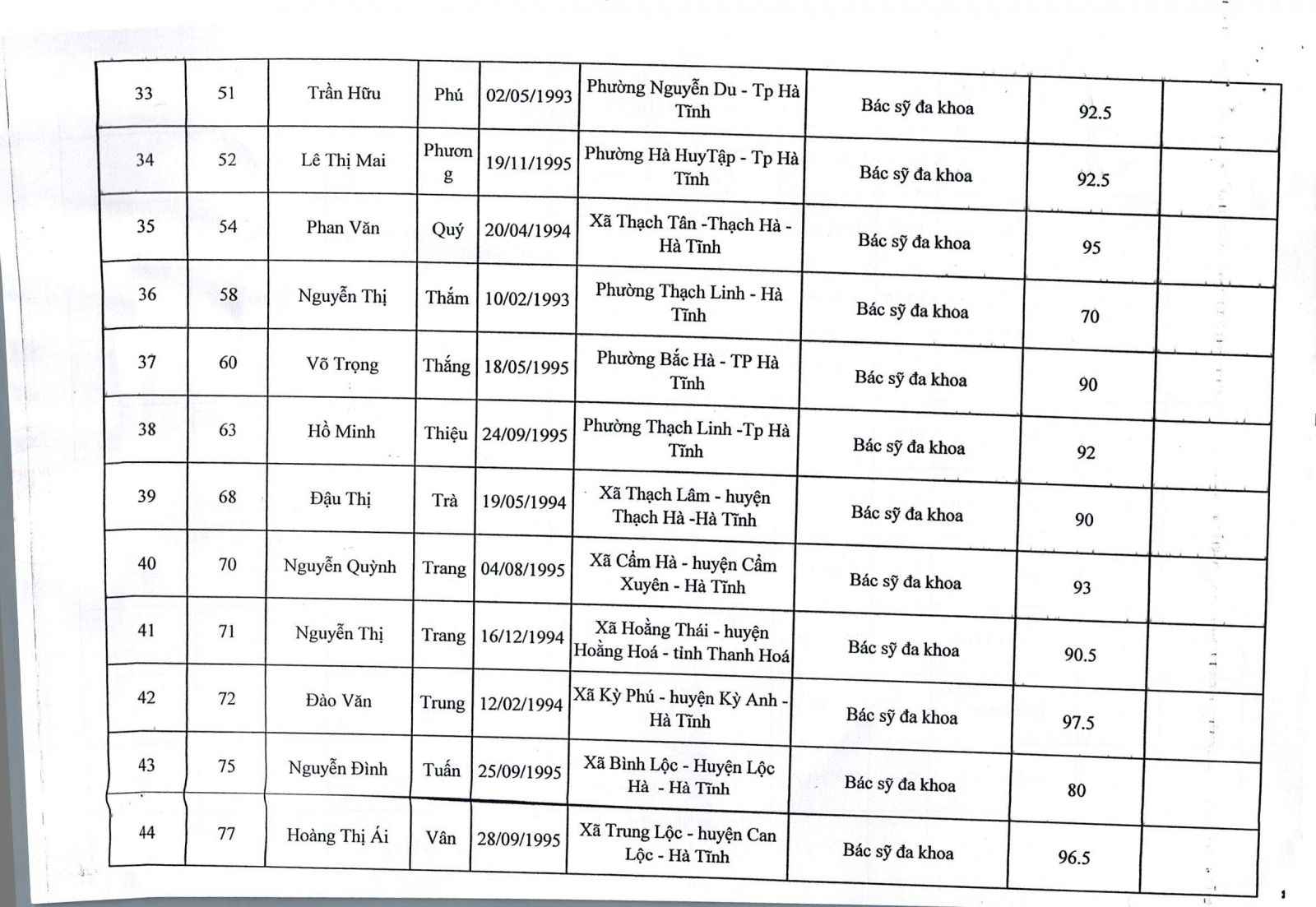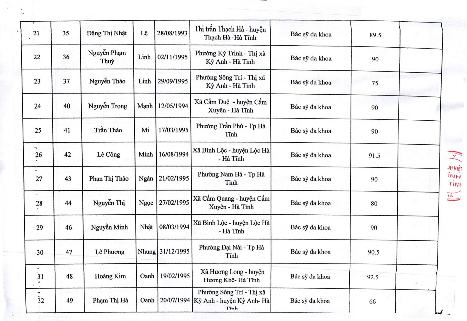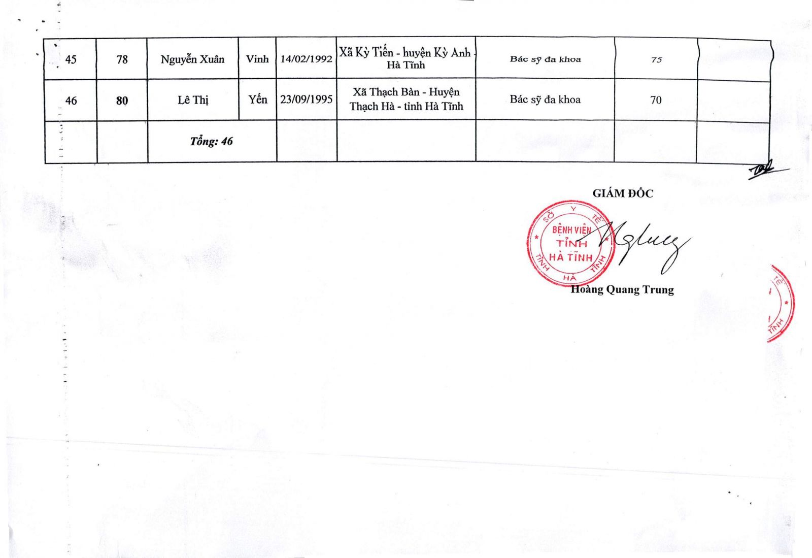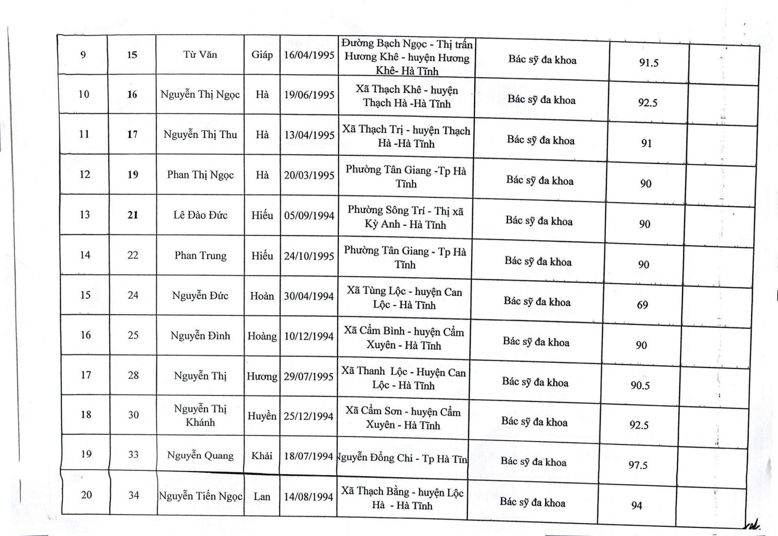 Bệnh viện Đa khoa tỉnh Hà Tĩnh thông báo kết quả trúng tuyển viên chức y tế năm 2019