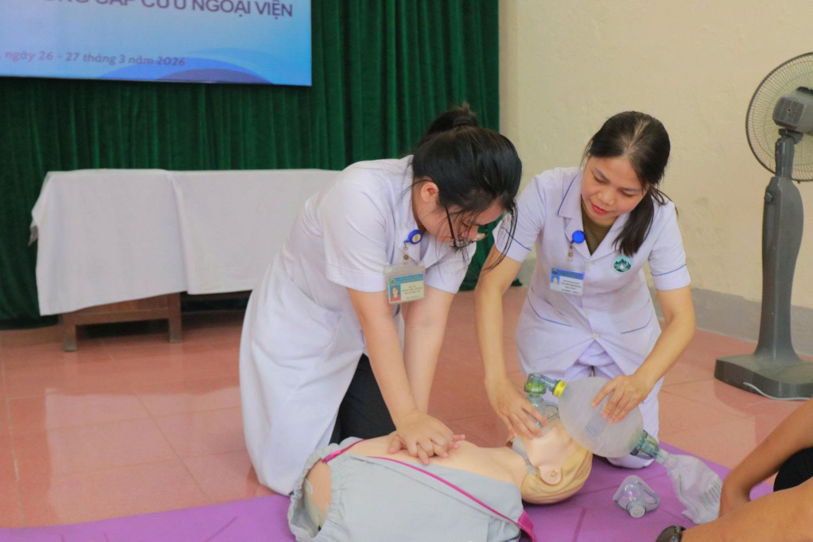 Các lớp tập huấn tập trung vào những nội dung thiết yếu trong cấp cứu trước viện, giúp nhân viên y tế nâng cao khả năng phản ứng nhanh và xử trí hiệu quả ngay từ hiện trường. Nội dung đào tạo bao gồm: Nhận diện và xử trí các tình huống cấp cứu thường gặp; Hồi sinh tim phổi (CPR), sử dụng máy sốc điện; Xử trí đa chấn thương, tai nạn giao thông; Kỹ năng vận chuyển bệnh nhân an toàn; Phối hợp kíp cấp cứu và liên lạc điều phối