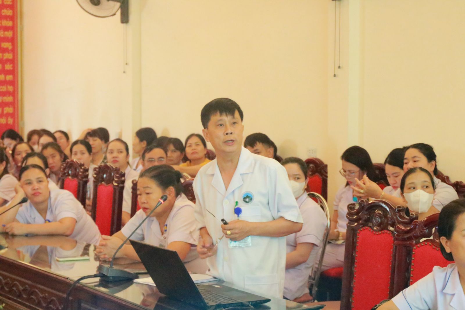 Tham dự buổi tập huấn có Đồng chí Lê Văn Dũng, Phó Giám đốc Bệnh viện, Đồng chí Vương Khả Quế, Trưởng phòng Kế hoạch tổng hợp, Đồng chí Trần Sỹ Thắng, Trưởng phòng Điều dưỡng cùng các điều dưỡng, hộ sinh, kỹ thuật viên của các khoa lâm sàng trong bệnh viện.