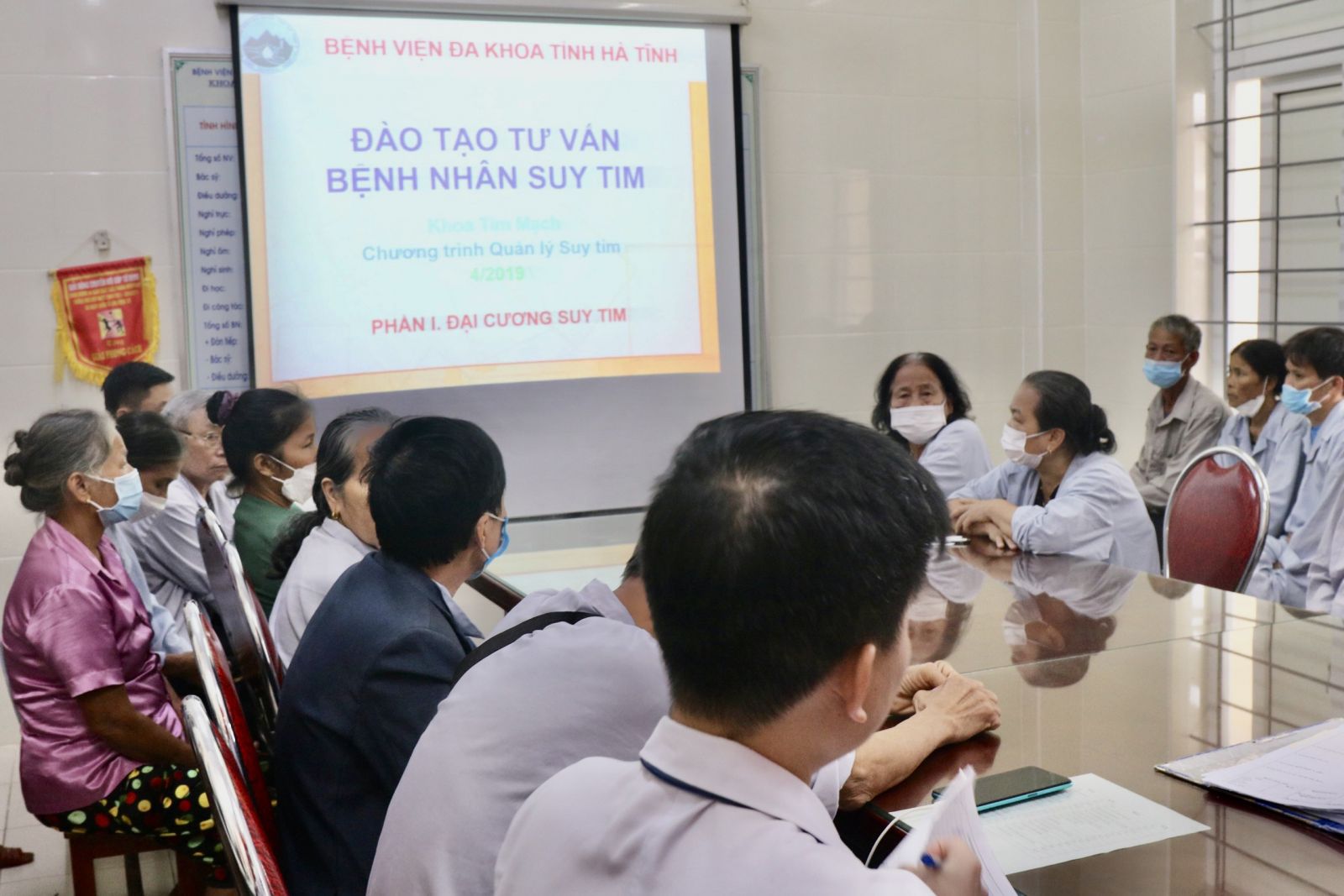 Bệnh viện Đa khoa tỉnh Hà Tĩnh triển khai chương trình "Đào tạo - tư vấn bệnh nhân suy tim" cho bệnh nhân tại Khoa Tim mạch.