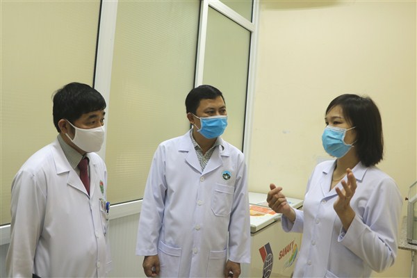 Giám đốc Sở Y tế Lê Ngọc Châu, Giám đốc bệnh viện Hoàng Quang Trung kiểm tra phòng xét nghiệm Virus SARS-CoV-2 tại Khoa Vi Sinh.