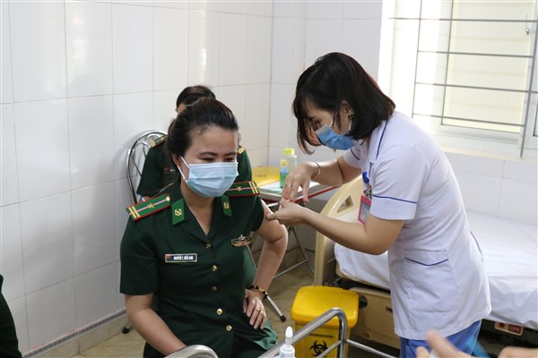 Nhân viên y tế tiến hành tiêm vaccine cho cán bộ, chiến sĩ