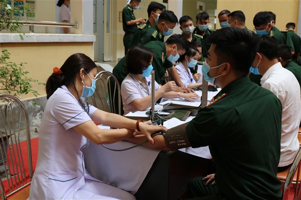 Các cán bộ chiến sĩ được khám sàng lọc trước khi tiêm