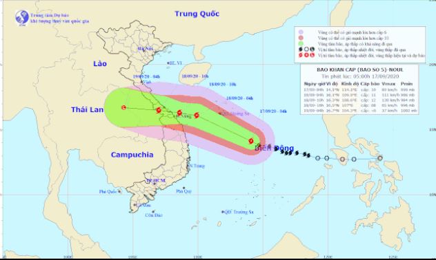 Hình ảnh đường đi của Bão số 5