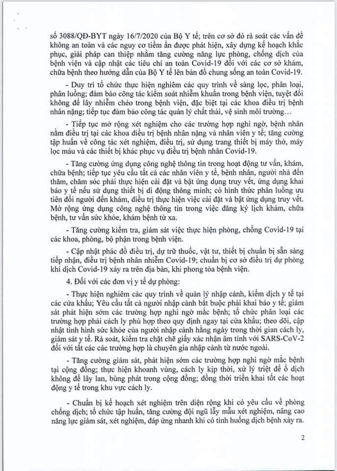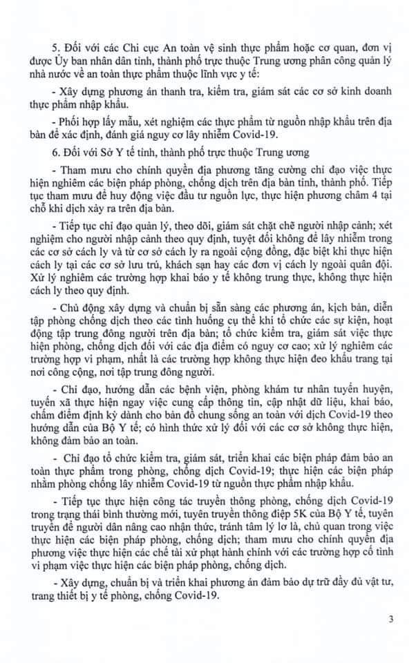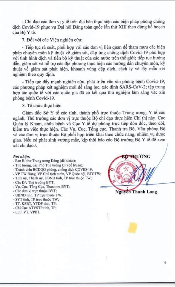 Bộ Y tế chỉ thị tăng cường thực hiện nghiêm các biện pháp phòng, chống dịch Covid -19