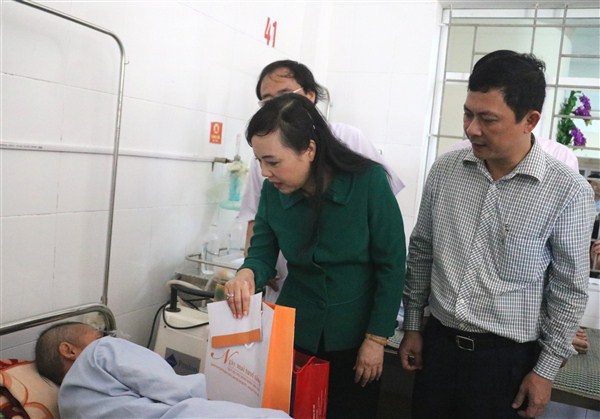 Cũng trong buổi sáng nay, Bộ trưởng Bộ Y tế và các đồng chí trong đoàn đã tặng 106 suất quà cho các bệnh nhân bị ung thư đang điều trị tại khoa Ung bướu và Y học hạt nhân, trị giá mổi suất quà 1.000.000 đồng.
