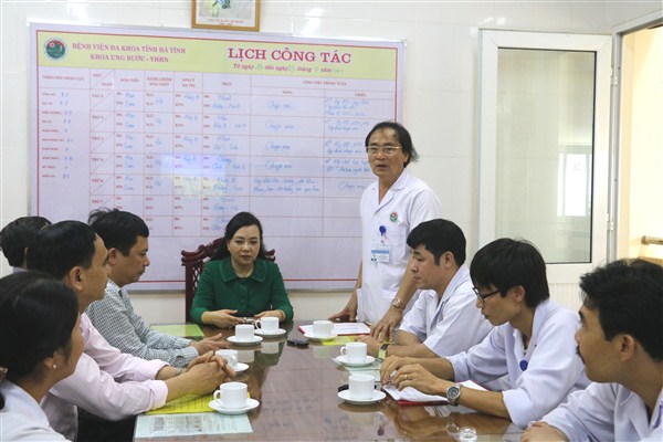 Tại buổi làm việc, Thầy thuốc nhân dân, Bác sỹ chuyên khoa 2 Nguyễn Viết Đồng, Phó Giám đốc Sở Y tế, Giám đốc Bệnh viện Đa khoa Tỉnh đã báo cáo tóm tắt các hoạt động chung của bệnh viện trong thời gian vừa qua. Bệnh viện Đa khoa tỉnh Hà Tĩnh hiện nay là bệnh viện hạng I, được giao kế hoạch 500 giường bệnh (1.200 giường thực kê), có 728 cán bộ viên chức (trong đó có 211 CBVC có trình độ đại học trở lên bao gồm: Tiến sỹ , BSCKII: 14; Thạc sỹ, BSCKI: 68; Bác sỹ: 83; Điều dưỡng CKI: 01; Thạc sỹ, BSCKI Dược: 04; Dược sỹ đại học: 4; Đại học điều dưỡng, KTV: 2; Đại học khác:17), có 40 khoa, phòng, ban, bộ phận.