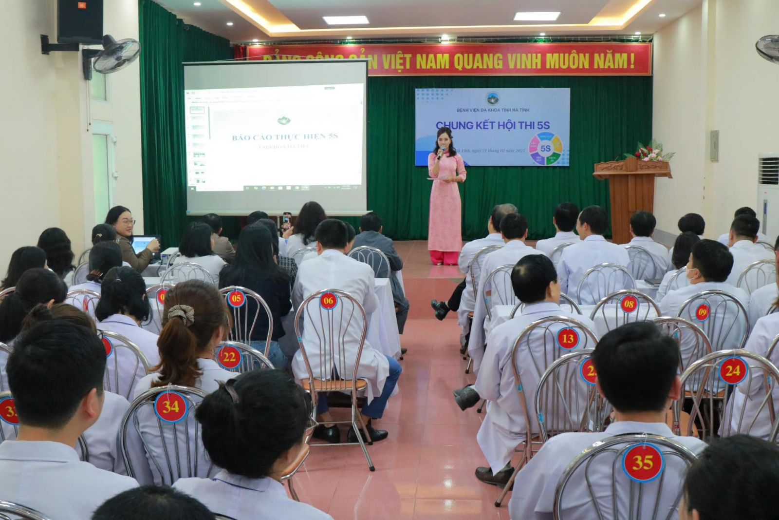 Được sự đồng ý của Đảng uỷ, Ban giám đốc Bệnh viện, sự hỗ trợ từ Ts. Nguyễn Thị Hải Liên - Trường Đại học y dược TP. Hồ Chí Minh. Thực hiện kế hoạch của đơn vị, chiều ngày 21/02/2025, Bệnh viện Đa khoa tỉnh Hà Tĩnh đã tổng kết và trao giải cuộc thi ngày hội 5S năm 2024.