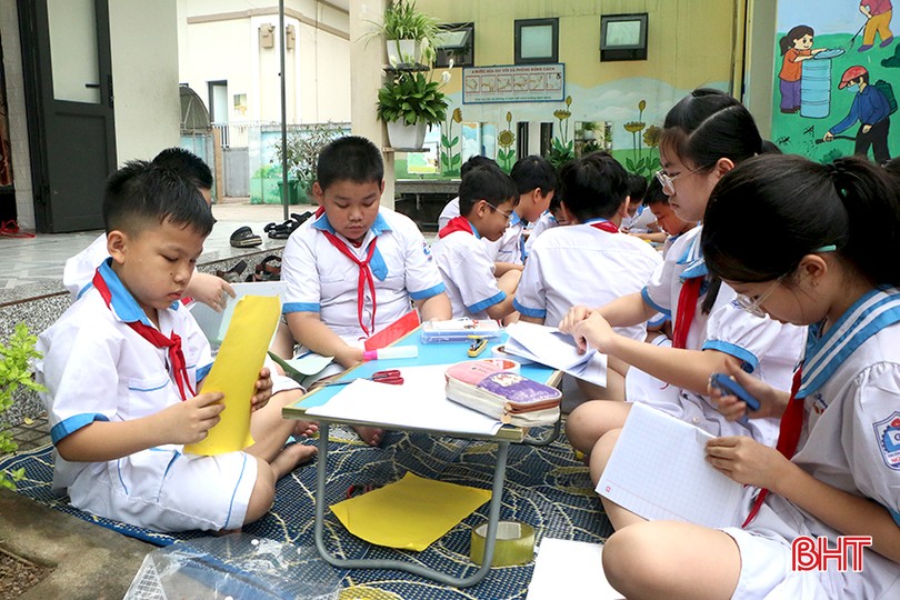 ... và tham gia tái chế vở cũ, vẽ bìa vở để ủng hộ học sinh gặp hoàn cảnh khó khăn.