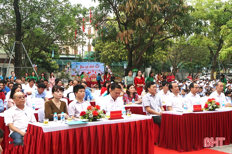 Cũng trong sáng 19/4, tại Trường Tiểu học Sơn Trường, Phòng GD&ĐT huyện Hương Sơn phối hợp với Trung tâm Văn hóa - Truyền thông huyện tổ chức Ngày Sách và văn hóa đọc Việt Nam năm 2024 với sự tham gia của hơn 400 giáo viên, học sinh.