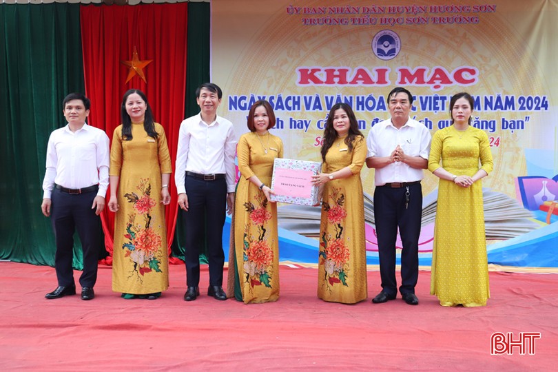 Hoạt động này nhằm xây dựng và phát triển phong trào đọc sách đối với toàn thể cán bộ, giáo viên và học sinh ở Hương Sơn; phát triển văn hóa đọc hướng tới xây dựng một xã hội học tập và học tập suốt đời. Đồng thời, góp phần khích lệ các em học sinh thỏa thích tìm tòi, khám phá tri thức, giúp các em có thêm kinh nghiệm sống, học tập và trau dồi tư tưởng, phẩm chất, đạo đức, lối sống và tư duy. (Trong ảnh: Lãnh đạo Trung tâm Văn hoá - Truyền thông huyện, Phòng GD&ĐT trao tặng sách cho Trường Tiểu học Sơn Trường).
