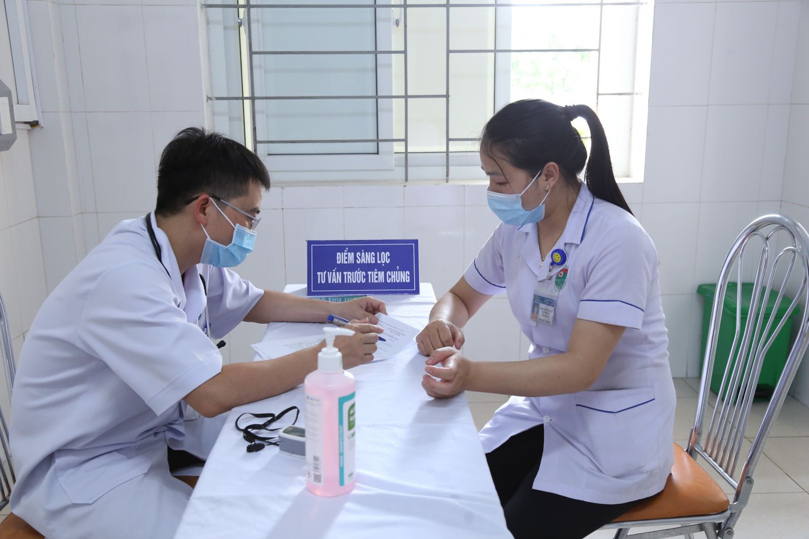 Bố trí đầy đủ vật tư, thiết bị và các y bác sỹ thực hiện sàng lọc và tiêm chủng.