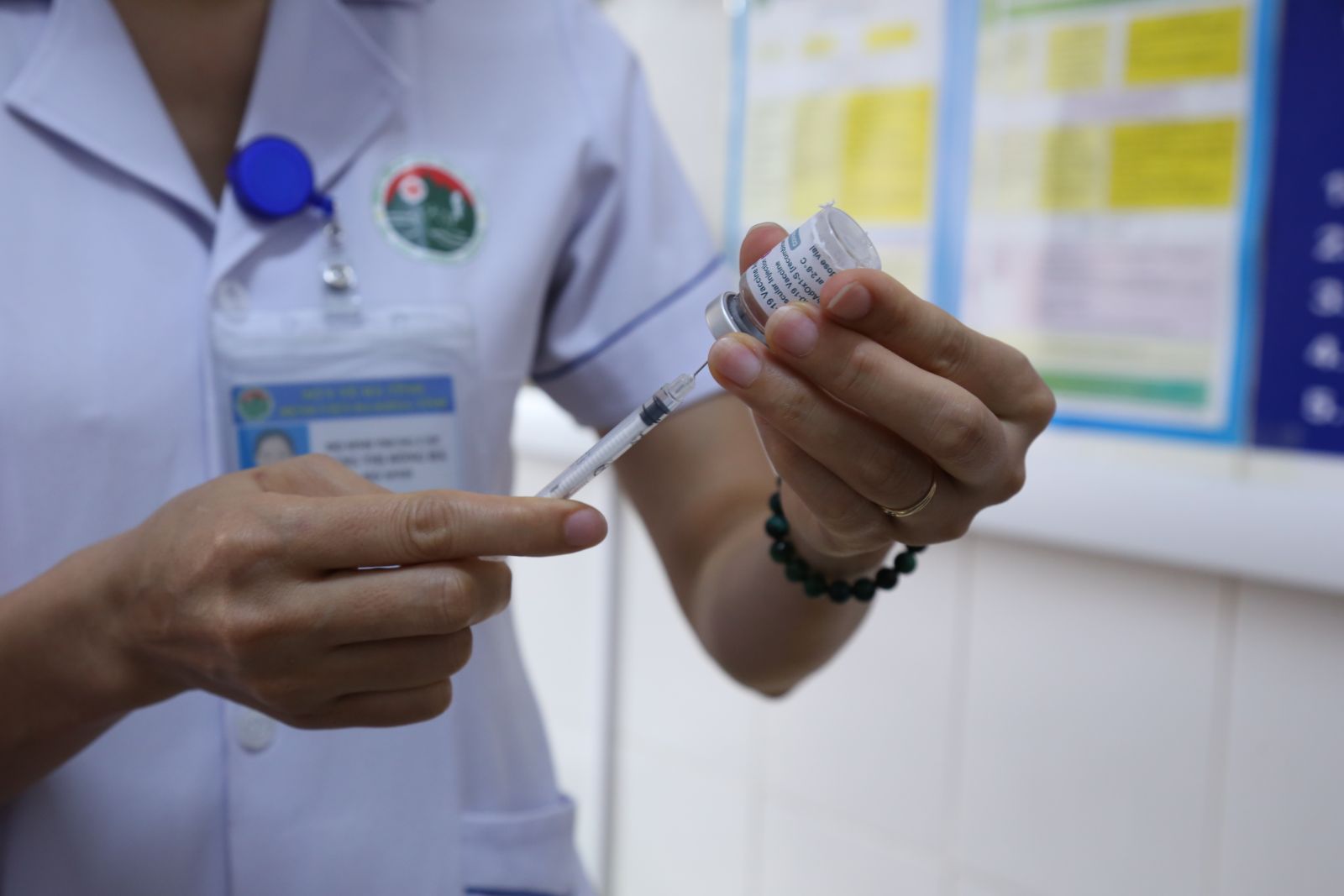 Mỗi liều tiêm được nhân viên y tế lấy đúng 0,5ml và...
