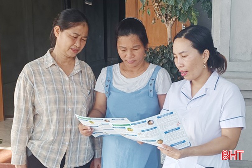Nhân viên Trạm Y tế xã Cẩm Hà (Cẩm Xuyên) đến các gia đình có phụ nữ mang thai để tuyên truyền về lợi ích của sàng lọc sơ sinh.