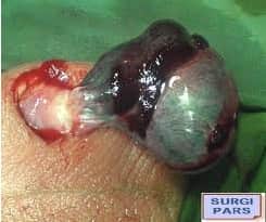 Hình ảnh tinh hoàn phẫu thuật ra đã hoại tử do bị xoắn