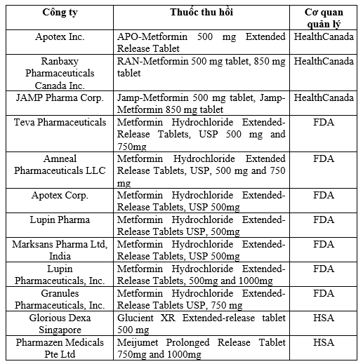 Lưu ý rằng việc thu hồi không áp dụng cho các chế phẩm chứa metformin giải phóng ngay lập tức.