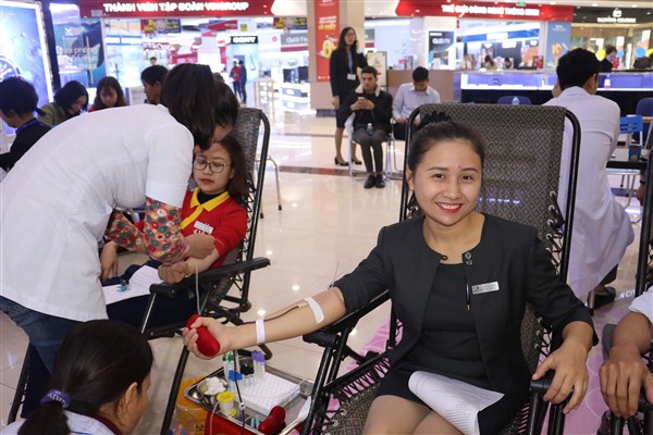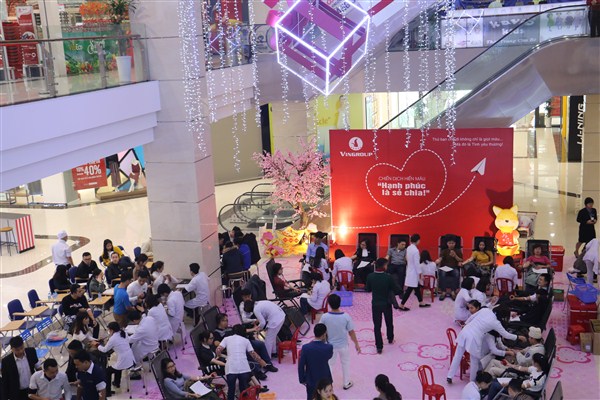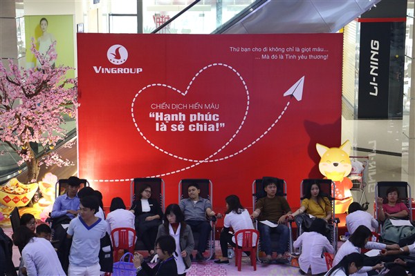 Sáng ngày 10/2, hưởng ứng Chiến dịch hiến máu "Hạnh phúc là sẻ chia", Tập đoàn Vingroup Hà Tĩnh đã phối hợp với Bệnh viện Đa khoa tỉnh tổ chức buổi hiến máu nhân đạo tại sảnh tòa nhà Vincom Plaza.