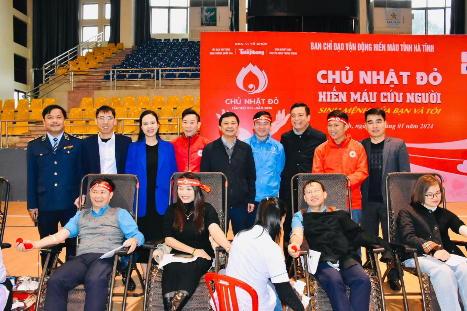 Hưởng ứng Chiến dịch vận động Hiến máu tình nguyện dịp Tết và Lễ hội Xuân Hồng năm 2024. Với mục đích nhân đạo cao đẹp, nhằm góp phần chung tay khắc phục tình trạng khan hiếm máu, kịp thời cấp cứu, điều trị bệnh nhân trong dịp Tết Nguyên đán Giáp Thìn,sáng 28/01/2024, Bệnh viện Đa khoa tỉnh Hà Tĩnh phối hợp với Ban thường vụ Tỉnh Đoàn Hà Tĩnh, Hội LHTN Việt Nam tỉnh, Liên đoàn Lao động tỉnh, Hội Chữ thập đỏ, Báo Tiền Phong tổ chức ngày hội Chủ Nhật Đỏ lần thứ XVI năm 2024.