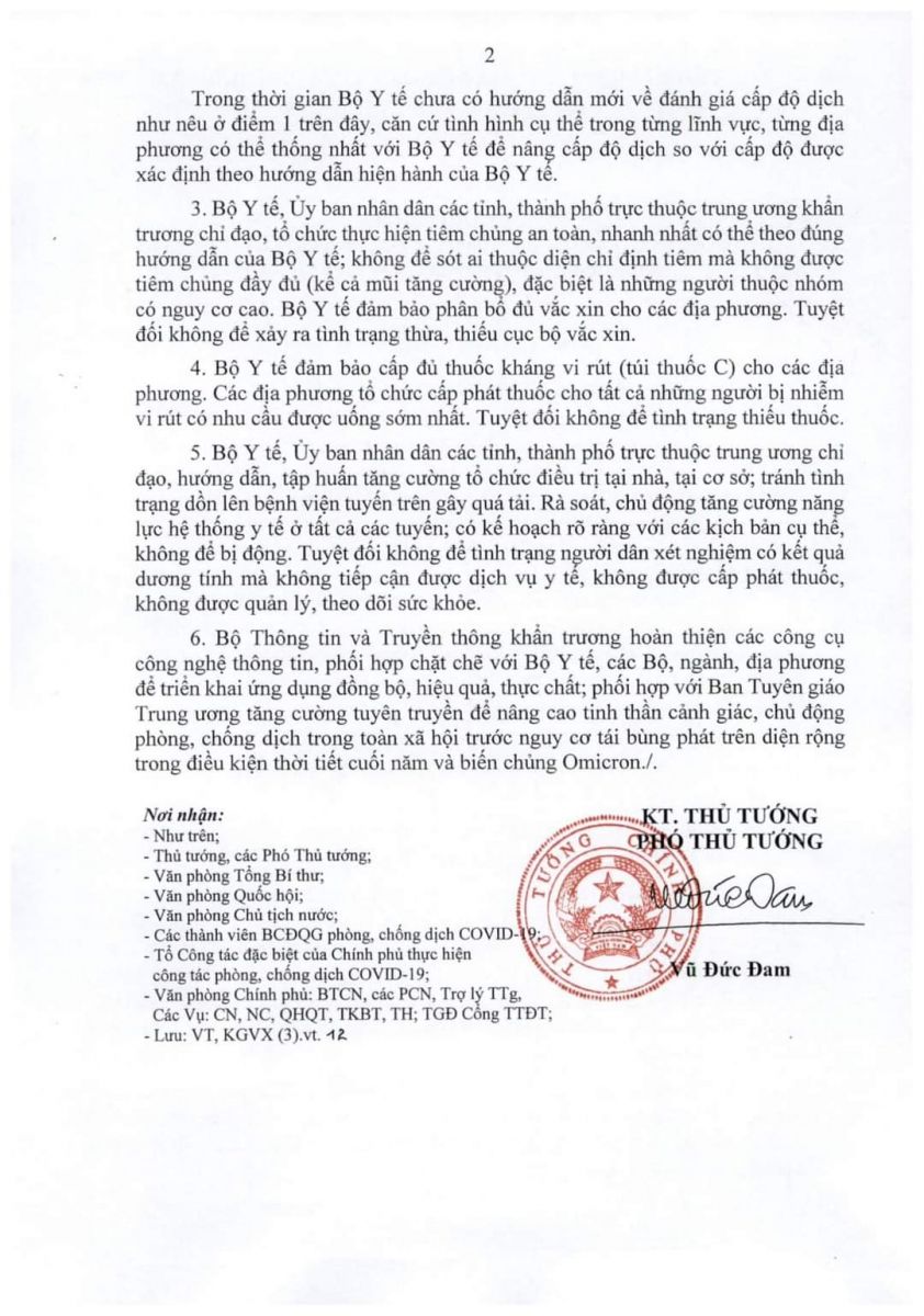 Phó Thủ tướng Vũ Đức Đam vừa ký Công điện số 1745/CĐ-TTg ngày 19/12/2021 của Thủ tướng Chính phủ về việc tăng cường công tác phòng, chống dịch COVID-19, kiểm soát biến chủng mới Omicron của virus SARS-CoV-2.