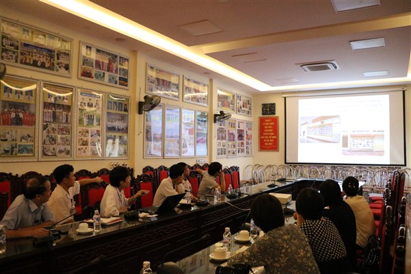 Tại buổi làm việc, BSCKI. Hoàng Song Hào, Trưởng phòng Quản lý chất lượng bệnh viện đã báo cáo công tác triển khai mô hình bệnh viện xanh - sạch - đẹp tại Bệnh viện Đa khoa tỉnh Hà Tĩnh. Sau khi dự án được triển khai, Bệnh viện đã kiện toàn và phân công chi tiết Ban xây dựng bệnh viện Xanh - Sạch - Đẹp - An toàn. Tổ chức triển khai 2 lớp tập huấn cho 116 cán bộ lãnh đạo bệnh viện và khoa, phòng, hai lớp nói chuyện chuyên đề cho 220 bệnh nhân và người nhà bệnh nhân. Bệnh viện cũng đã cho treo 4 pano trong khuôn viên nhằm tuyên truyền việc xây dựng bệnh viện xanh, sạch, đẹp cho CBVC, bệnh nhân và người nhà bệnh nhân.