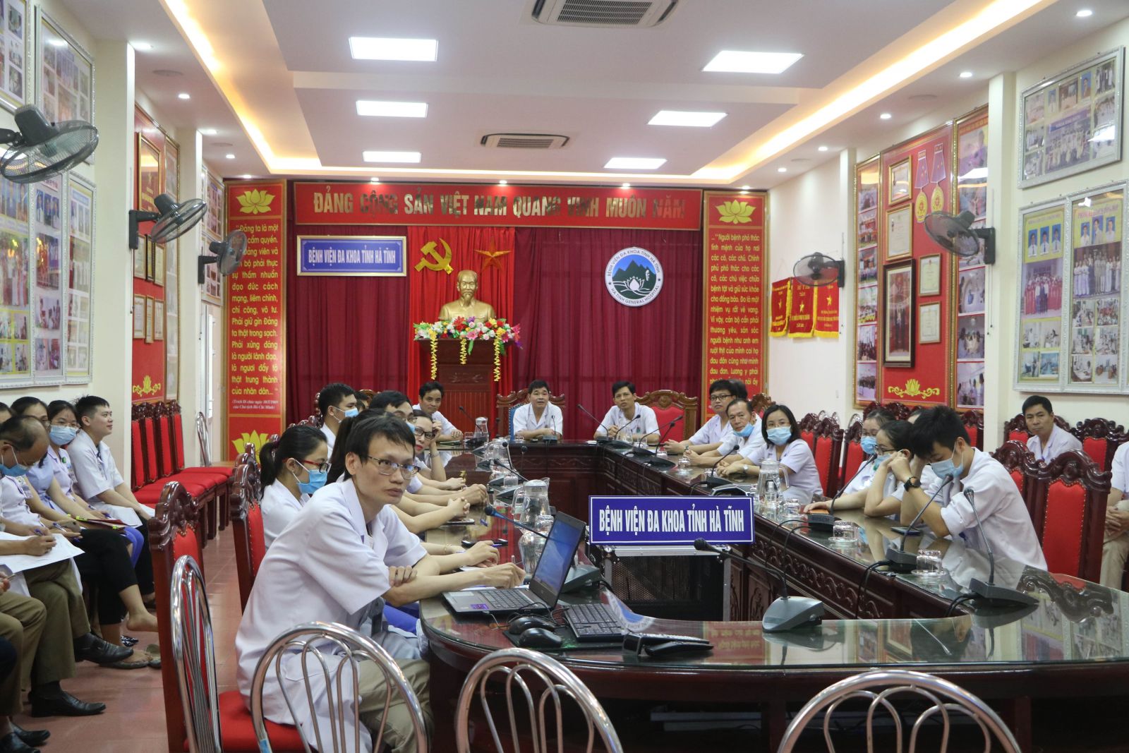 Chiều 20/08/2020, Bệnh viện Đa khoa tỉnh Hà Tĩnh phối hợp với Bệnh viện Nội tiết Trung Ương triển khai tổ chức khám, chữa bệnh từ xa cho bệnh nhân nặng đang điều trị tại bệnh viện qua hình thức hội chẩn trực tuyến.