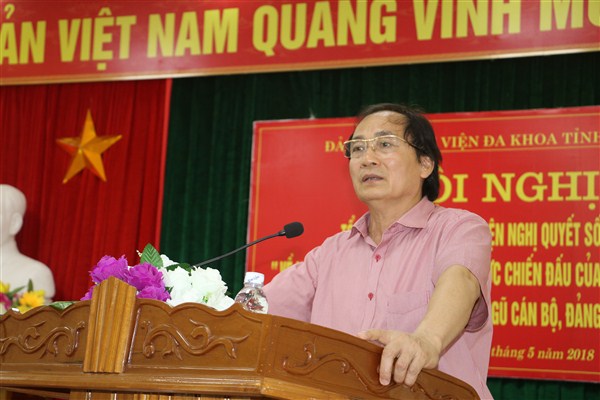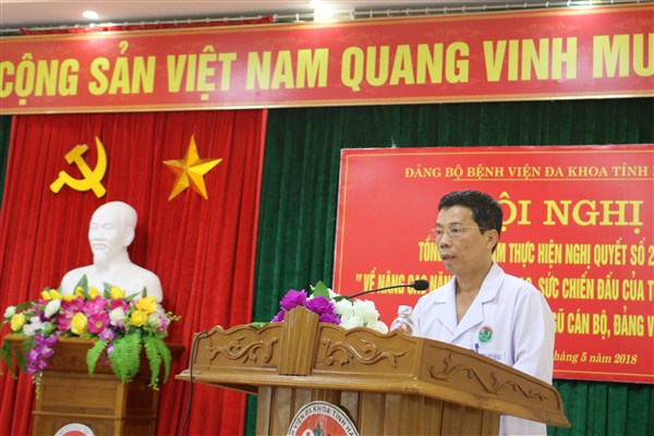 Phát biểu tại Hội nghị, đồng chí Nguyễn Trọng Vân, Ủy viên Ban Thường vụ, Trưởng ban Tuyên giáo Đảng ủy khối các cơ quan tỉnh đã biểu dương những thành quả mà Đảng bộ và cán bộ, viên chức bệnh viện đã đạt được; đồng thời yêu cầu mỗi cán bộ đảng viên nỗ lực phấn đấu để xây dựng Đảng bộ, thực hiện nghiêm túc các Chỉ thị, Nghị quyết của Đảng; đẩy mạnh việc học tập và làm theo tư tưởng, đạo đức phong cách Hồ Chí Minh, gắn với thực hiện Nghị quyết Trung ương 4 khóa XII về tăng cường xây dựng chỉnh đốn Đảng, ngăn chặn đẩy lùi sự suy thoái về tư tưởng chính trị, đạo đức lối sống, những biểu hiện "tự diễn biến", "tự chuyển hóa"; xây dựng Bệnh viện xứng đáng là lá cờ đầu trong công tác Đảng, công tác chăm sóc sức khỏe nhân dân tỉnh nhà.