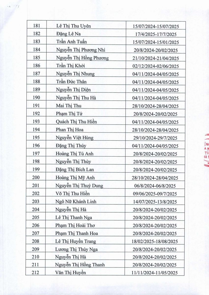 Danh sách người hoàn thành thực hành khám bệnh, chữa bệnh tại Bệnh viện Đa khoa tỉnh Hà Tĩnh 05/1/2026