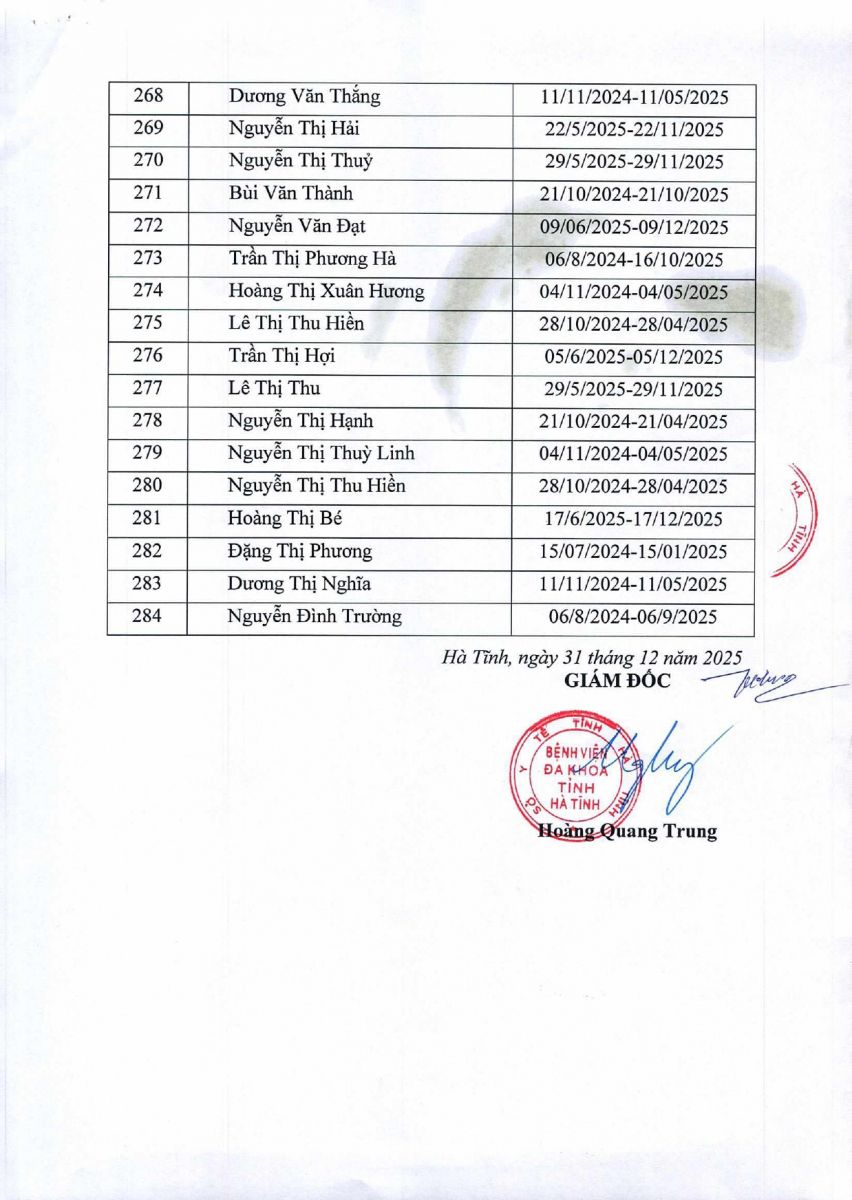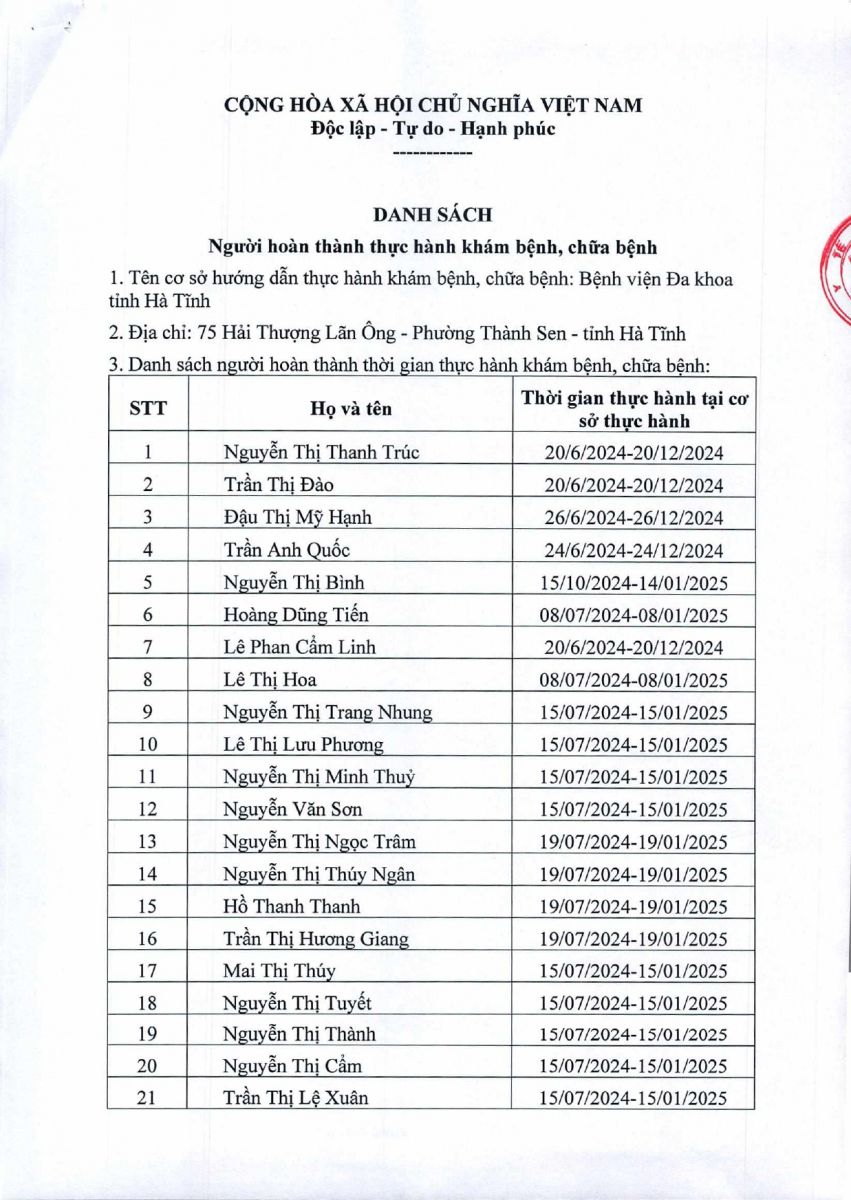 Danh sách người hoàn thành thực hành khám bệnh, chữa bệnh tại Bệnh viện Đa khoa tỉnh 31/12/2025