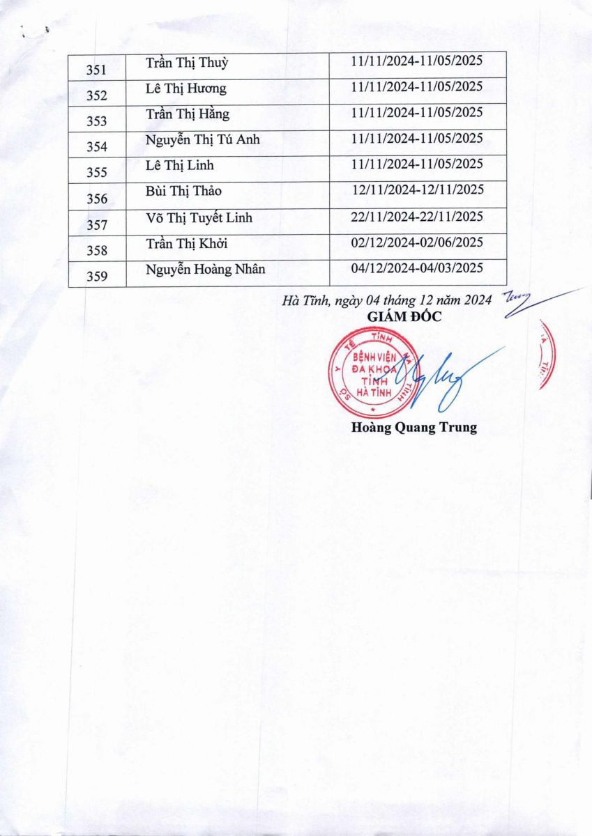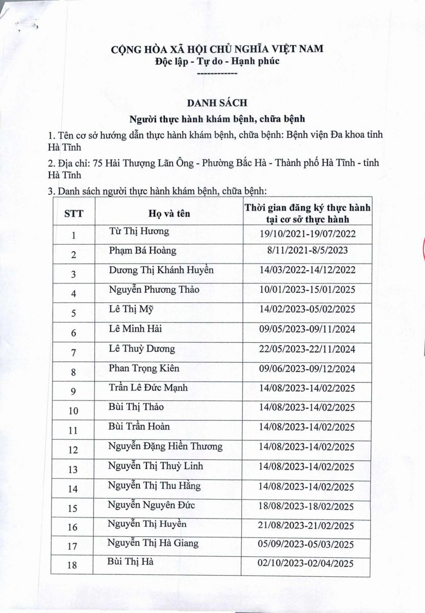 Danh sách người thực hành khám bệnh, chữa bệnh tại Bệnh viện Đa khoa tỉnh Hà Tĩnh 04/12/2024
