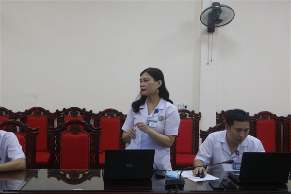 ThS.BS Lê Thị Hà, Trưởng khoa Tai Mũi Họng đã báo cáo tình hình phát triển chung của khoa, những kỹ thuật đã làm được, đang triển khai trong thời gian vừa qua... Đồng thời nêu ra một số khó khăn đang gặp phải về vấn đề nhân lực, cơ sở hạ tầng và trang thiết bị phục vụ quá trình khám và điều trị cho bệnh nhân.
