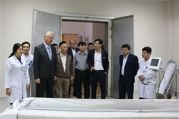 Cũng nằm trong chương trình, đoàn công tác đã tiến hành khảo sát, tham quan cơ sở vật chất, trang thiết bị, nhân lực của Bệnh viện Đa khoa tỉnh Hà Tĩnh.