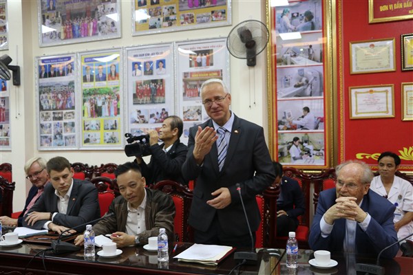Tiến sĩ Stefan Rudolph thay mặt đoàn gửi lời cảm ơn tới lãnh đạo bệnh viện đã tạo điều kiện để đoàn công tác được tìm hiểu rõ hơn về các hoạt động y tế.