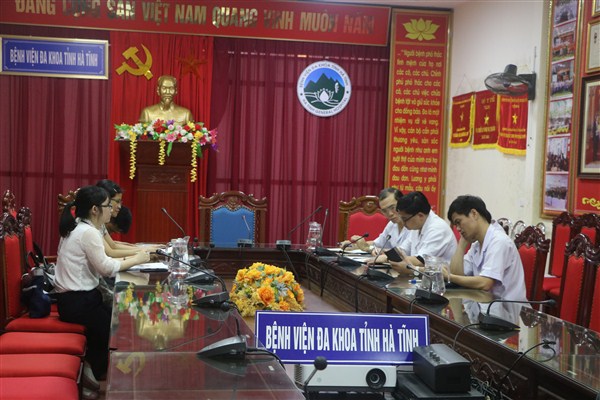 Tại buổi làm việc, Đoàn làm việc và Bệnh viện đã tiến hành đánh giá kết quả triển khai Dự án Bệnh viện vệ tinh tại BVĐK tỉnh Hà Tĩnh từ năm 2016-2020, phân tích thuận lợi, khó khăn sau 5 năm triển khai dự án và đề xuất giải pháp đồng thời xây dựng kế hoạch triển khai dự án giai đoạn tiếp theo.