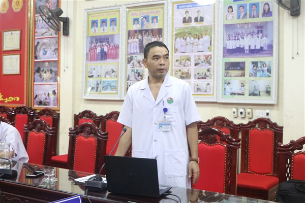 BSCKI Nguyễn Việt Hùng, Phó trưởng khoa Ung bướu - YHHN đã trình bày Báo cáo Kết quả thực hiện dự án Bệnh viện vệ tinh, đồng thời nêu ra một số khó khăn đang gặp phải về vấn đề nhân lực, cơ sở hạ tầng và trang thiết bị phục vụ quá trình khám và điều trị cho bệnh nhân.