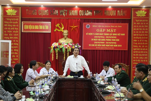 Chiều ngày 21/12/2018, nhân dịp kỷ niệm 74 năm Ngày thành lập quân đội nhân dân Việt Nam (22/12/1944 - 22/12/2018), Bệnh viện đa khoa tỉnh đã tổ chức Buổi gặp mặt cựu chiến binh, thanh niên xung phong và cán bộ viên chức đã nghỉ hưu năm 2018.