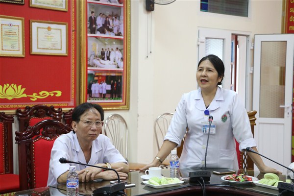 Thầy thuốc ưu tú, Bác sỹ Trần Thị Dung, PGĐ bệnh viện thay mặt lãnh đạo bệnh viện gửi lời chúc tốt đẹp nhất tới các đồng chí hội viên Hội cựu chiến binh và các đồng chí cán bộ viên chức nghỉ hưu năm 2018