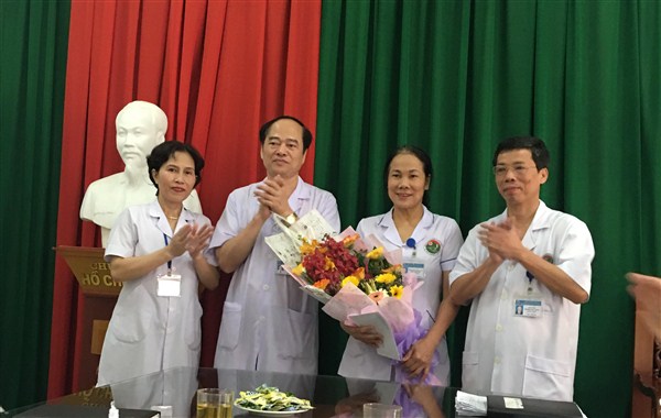 Trong buổi sáng cùng ngày, lãnh đạo bệnh viện đã đến khoa Nhi để trao quyết định và tri ân Điều dưỡng Kiều Thị Liên nghỉ hưu trong đợt này.