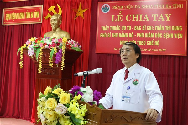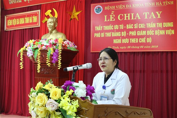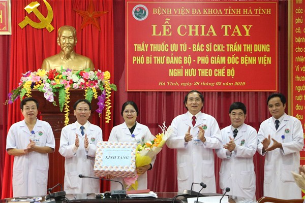 Sáng ngày 27/02/2019, Bệnh viện Đa khoa tỉnh Hà Tĩnh đã tổ chức buổi Gặp mặt vinh danh và chia tay Thầy thuốc ưu tú, BSCKI Trần Thị Dung, Phó Bí thư Đảng ủy, Phó Giám đốc bệnh viện nhận quyết định nghỉ hưu theo chế độ.